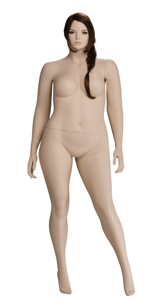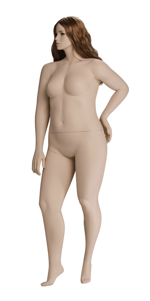 COMFORT is a contemporary line in an inclusive size range that represents a more realistic body type than typical mannequins. The dynamic poses are more modern and feminine than most plus size mannequins and reflect the style of the growing plus size fashion market.